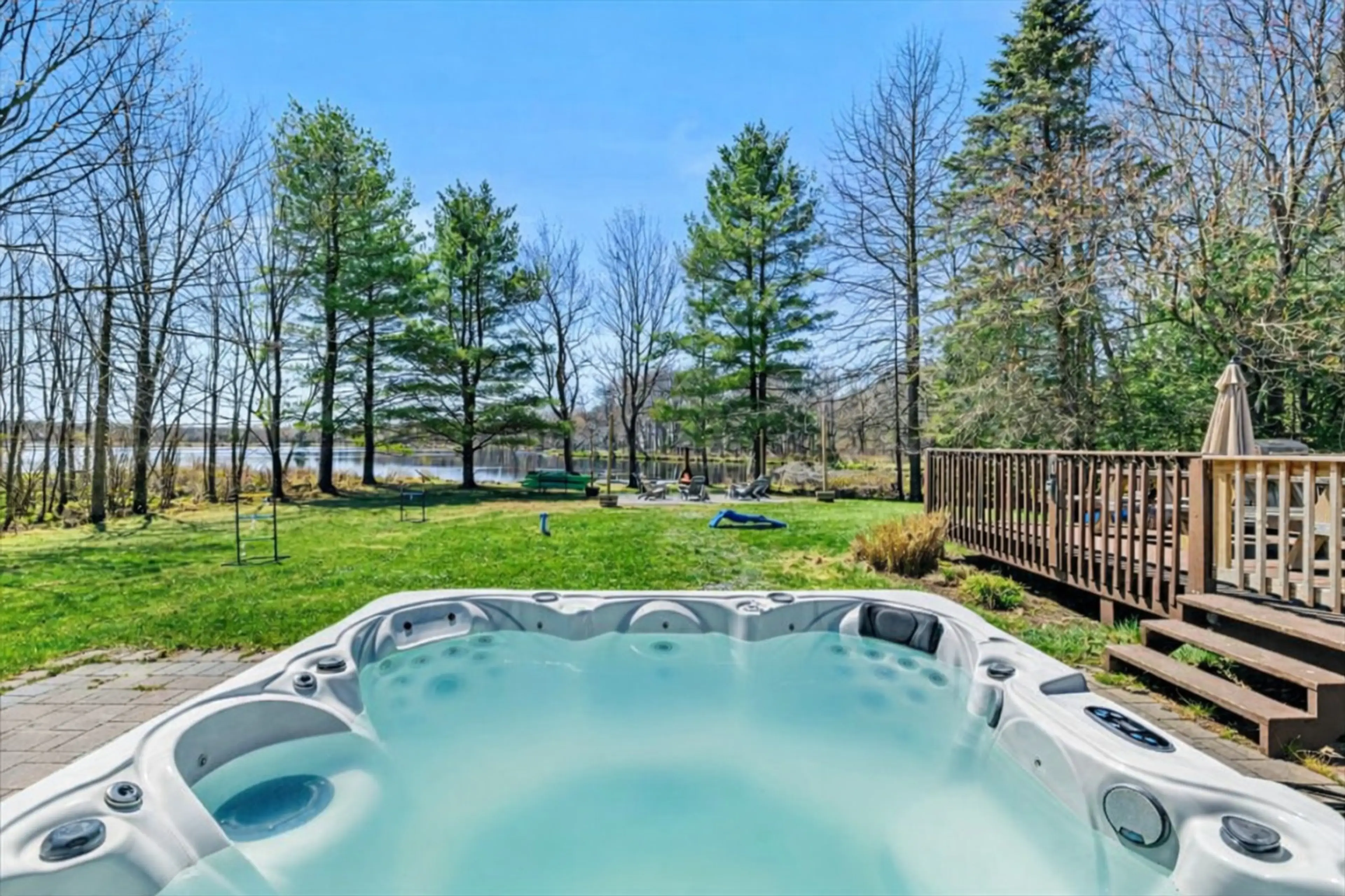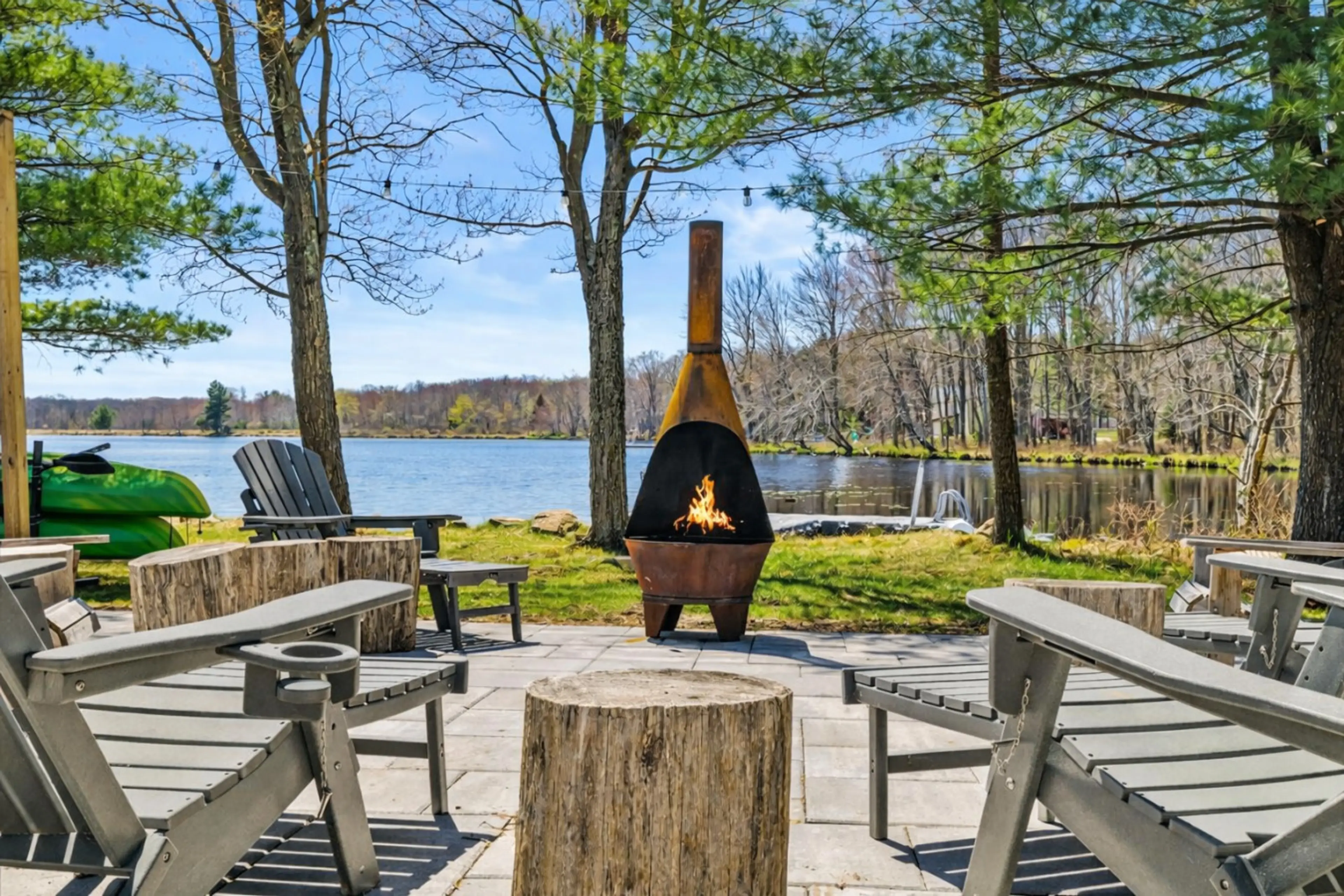 This LAKEFRONT home awaits in the Poconos! This 3+ bdrm gem is in a quiet community & on a beautiful lake, perfect for a large family. Enjoy a cozy interior with modern amenities, outdoor living space w/ game room, hot tub, fire pit, large deck, and private dock for waterside activities & adventures...